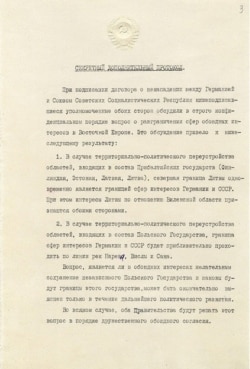 Секретний додатковий протокол до Договору про ненапад між СРСР і Німеччиною. 23 серпня 1939 року. Радянський оригінал російською мовою